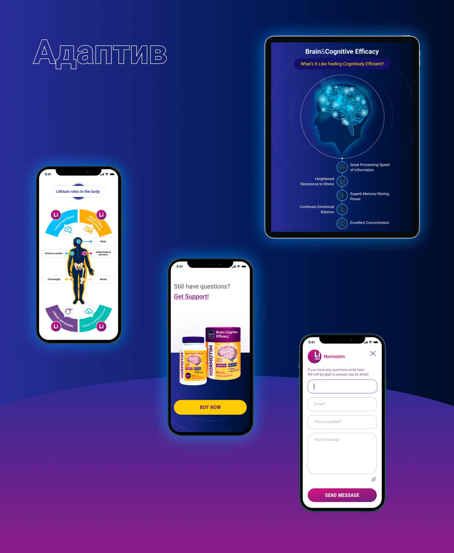 Особое внимание было уделено удобству использования. Страница адаптирована под все устройства — от десктопов до смартфонов. Независимо от формата экрана пользователю комфортно знакомиться с информацией, изучать состав и преимущества продукта, а также обращаться через форму обратной связи. Эта форма стала важной частью коммуникации, позволяя посетителям задать вопросы или получить консультацию прямо на сайте.
