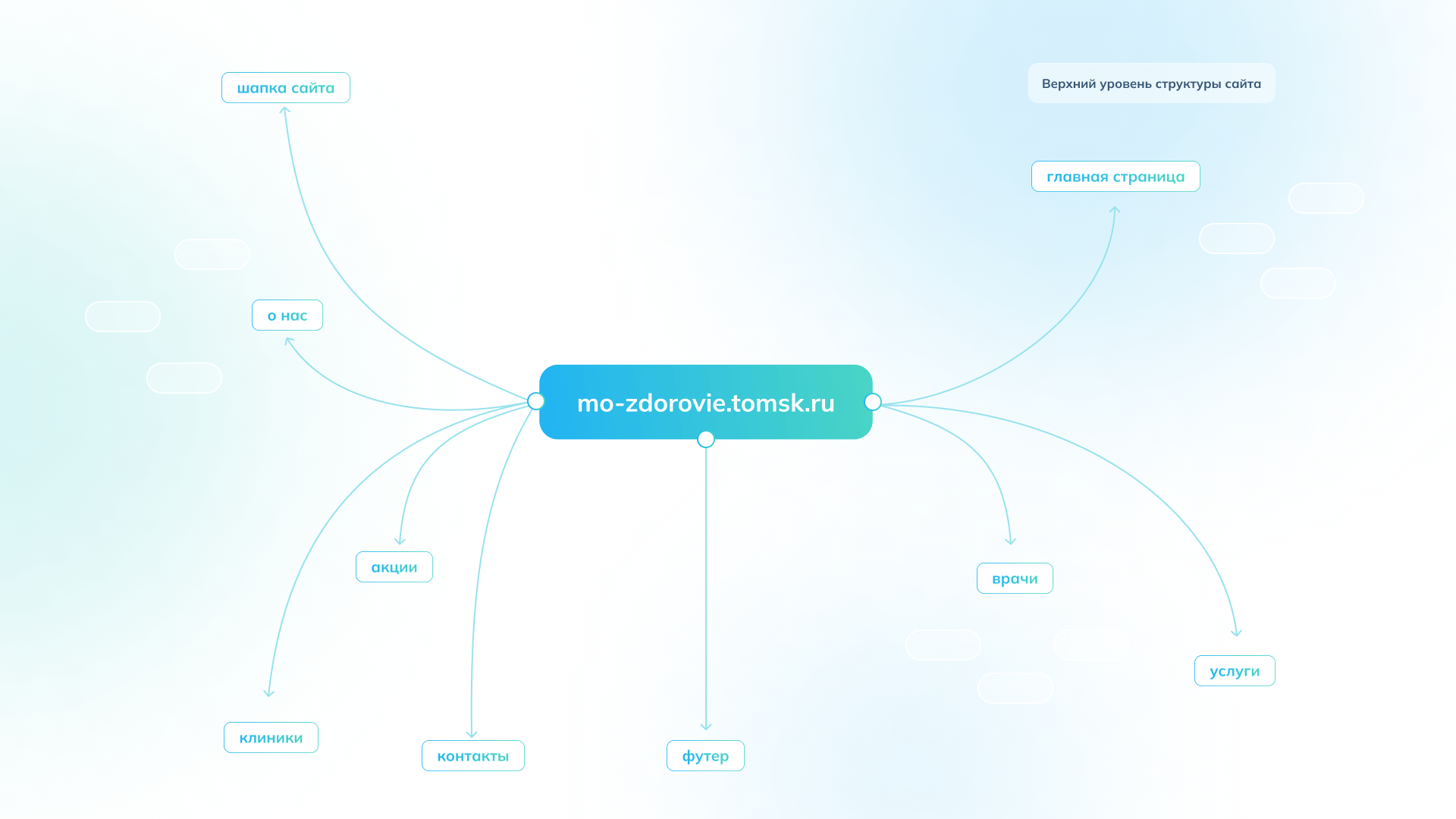 Работа над проектом началась с анализа конкурентных решений и успешных практик в сфере медицинских сайтов. На основе анализа была разработана многоуровневая карта сайта и прототипы страниц, включая главную, разделы услуг, врачей и контактов.