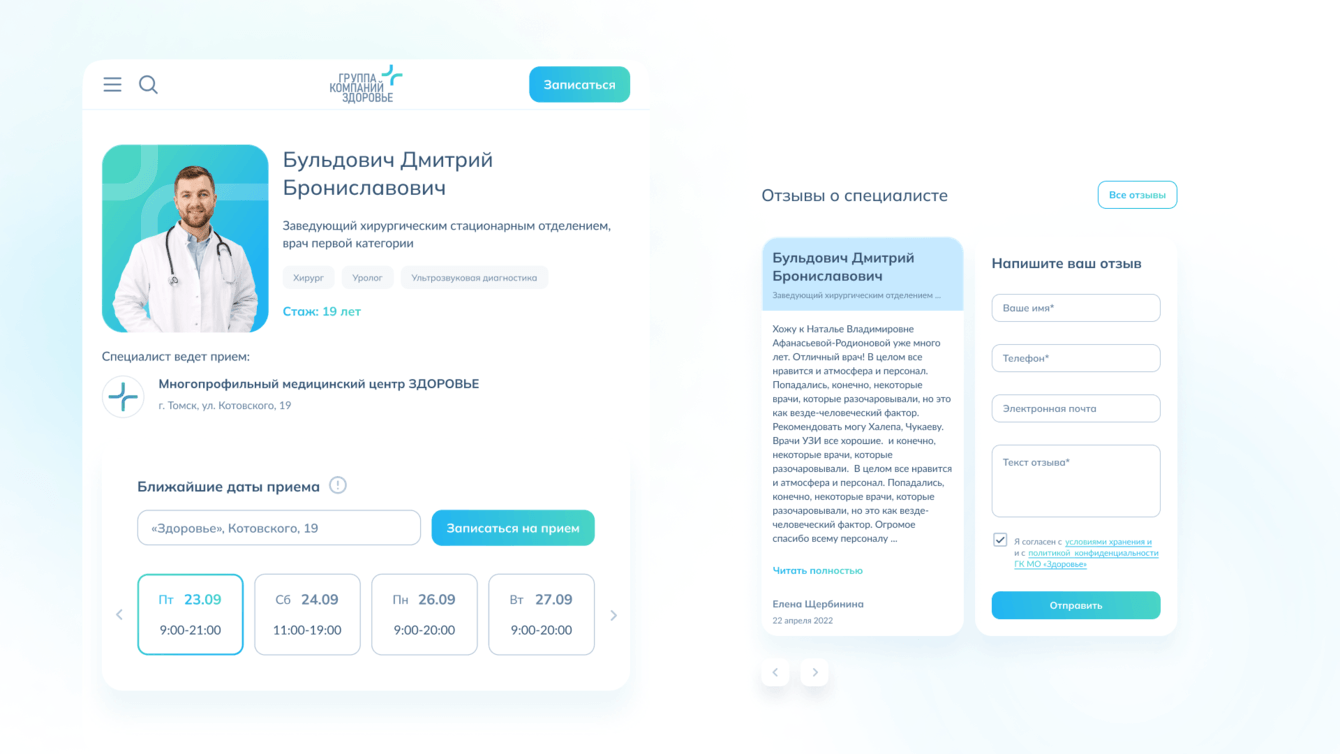 На странице специалиста пользователи могут оставить отзыв, для этого им необходимо заполнить небольшую форму. В случае получения негативного отзыва служба качества клиник может оперативно связаться с пациентом и взять ситуацию под контроль.