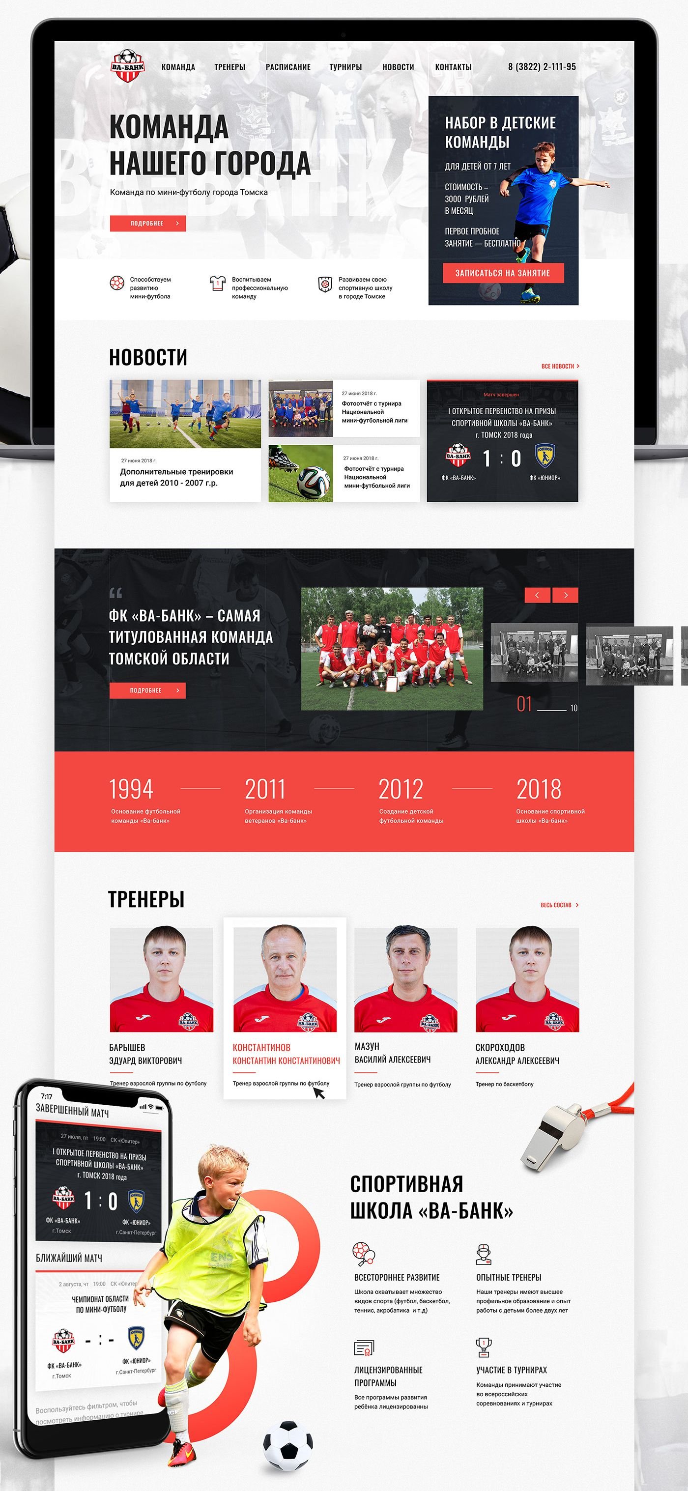 Дизайн и разработка сайта спортивной школы «Ва-Банк»